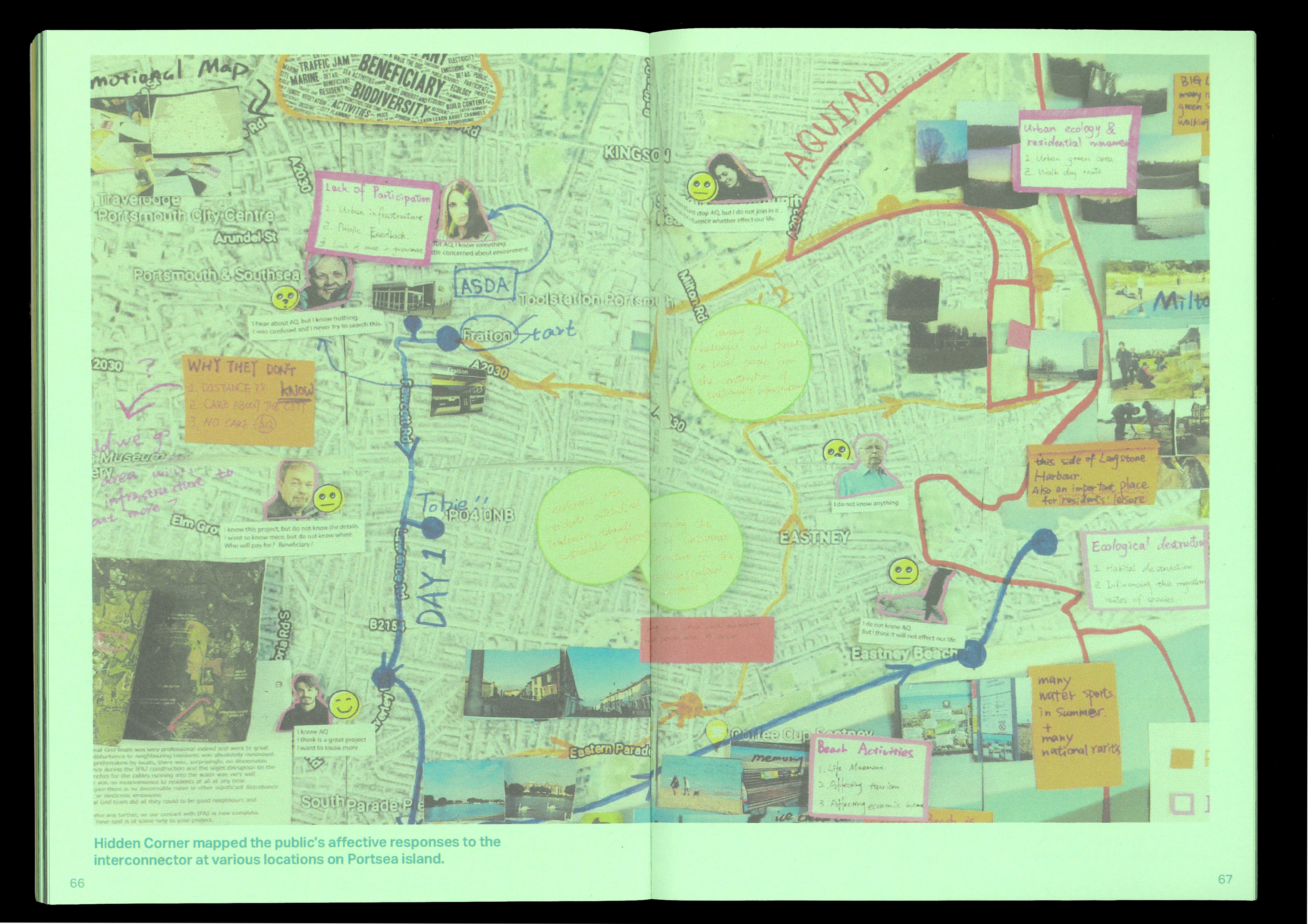 The proposed AQUIND interconnector is a 2,000MW subsea and underground bi-directional electric power transmission link between Portsmouth, on the south coast of England, and Normandy, in France. The issues and activities related to the planning application and the community’s response to it, are the focus of NON-AQUIND, a design brief set by designer and researcher Rebecca Glyn-Blanco and Tobie Kerridge.