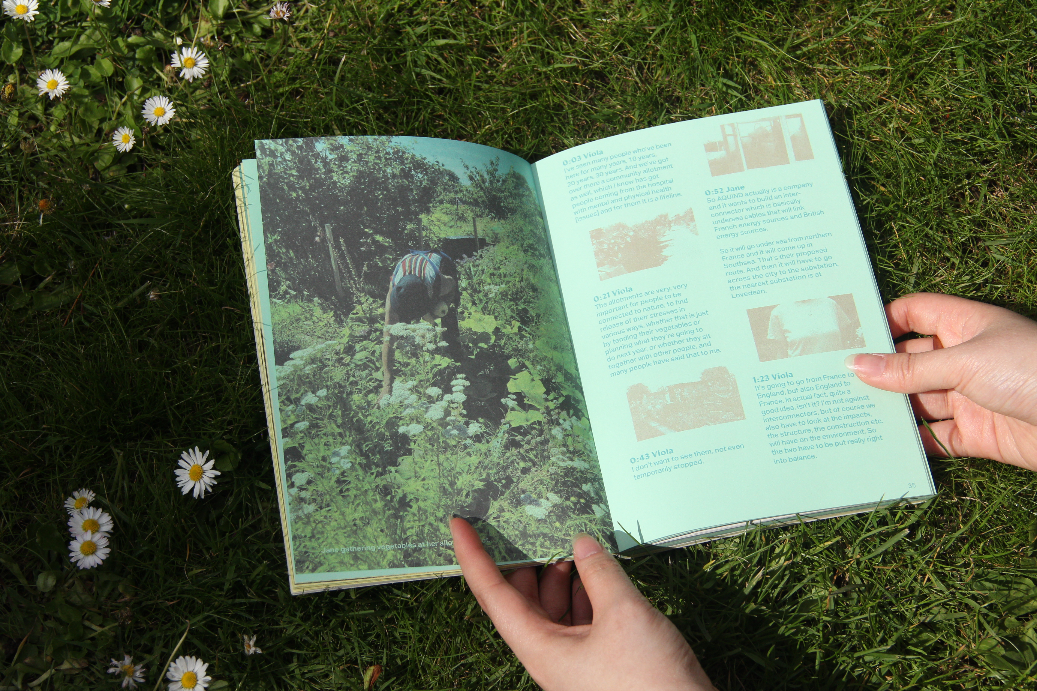 Eastney & Milton Allotments in Portsmouth was central to STOP AQUIND’s cause. A sticker featuring the publication’s title was designed, drawing inspiration from the aesthetics of fruit stickers to create a visual connection to the allotment.