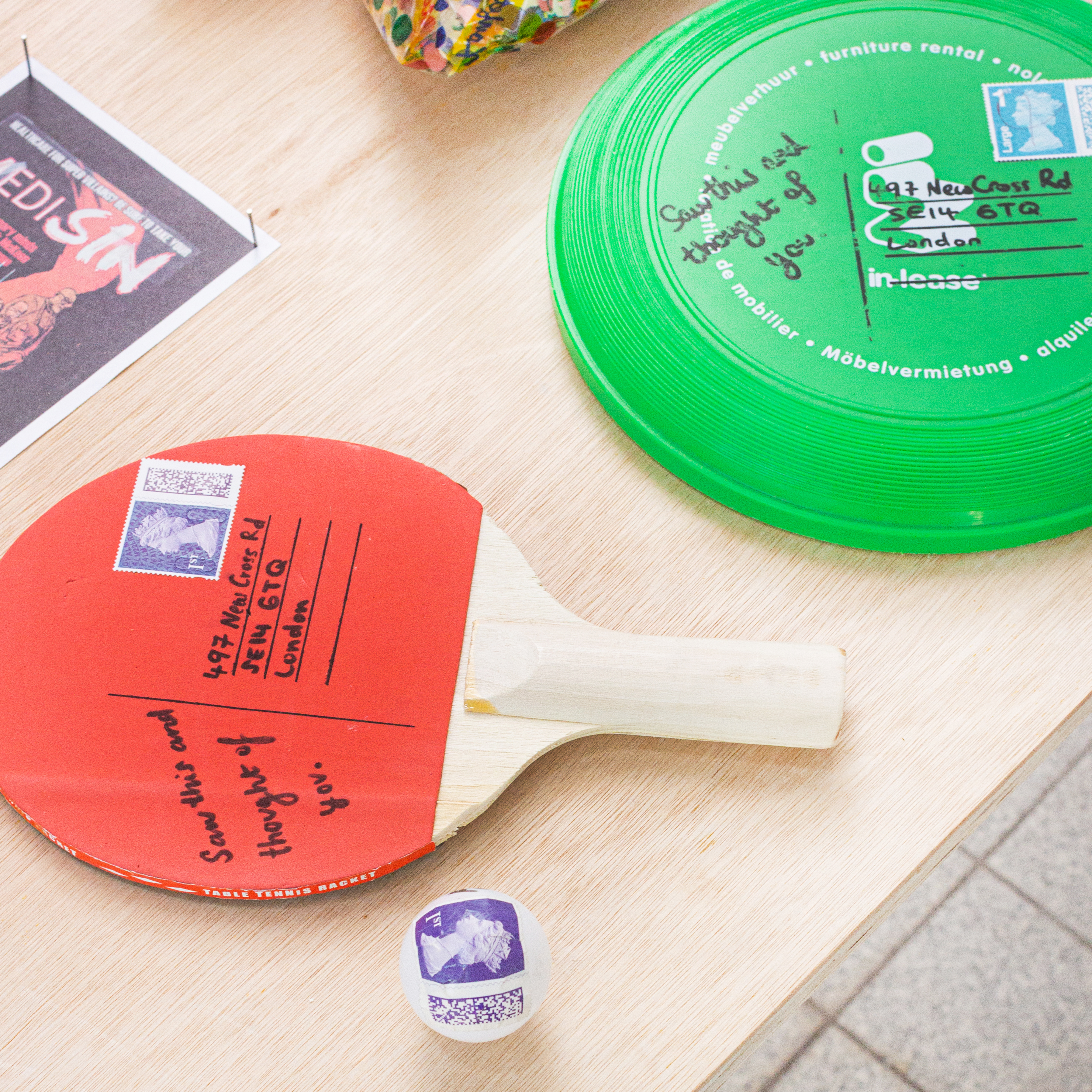 As part of A Cheap Night In/ A Cheap Day Out exhibition, Peas Press collected and screen printed the back of postcards onto objects, broadening the definition, shape and weight of the standard A6 postcard. While some objects were successfully delivered, others were lost in transit...during the opening we hosted a live screenprinting session, inviting guests to bring their own objects to be “postified”